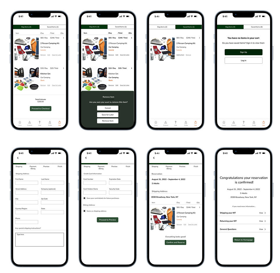 Through this project, the goal is to design an app for Kit Lender (existing platform) to allow customers to rent gear through their mobile devices. Creating a beginner friendly seam-less experience that will boost customer confidence and develop trust with the company so users will be able to enjoy the experiences of renting gear as a beginner outdoor enthusiast.